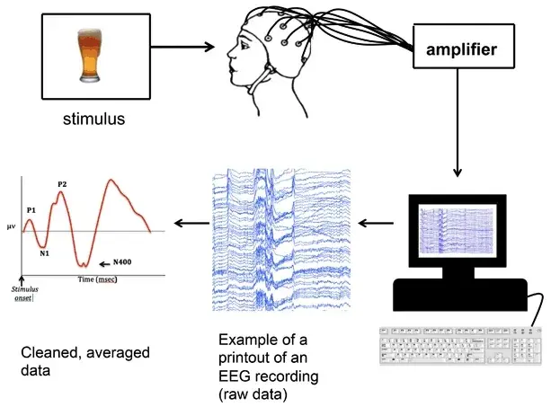 因此,ERP被广泛应用于各种心理实验,以研究认知过程的各个方面,如语言理解与生成、记忆、注意力等。由于ERP的振幅非常小,通常在原始EEG记录中难以察觉。所以,需要通过创建与相同刺激重复呈现时间锁定的记录周期的平均值(称为epoch)来分离出ERP。与刺激呈现无关的自发EEG波动被平均,从而产生反映时间锁定刺激相关活动的ERP波。