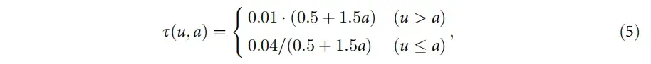 肌肉激活水平aa 是根据输入刺激信号 u 计算得出的,范围在 0 到 1.0 之间。