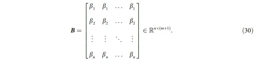 其中,B为n × ( m +1) 矩阵,沿横轴 展开β ,定义如下: