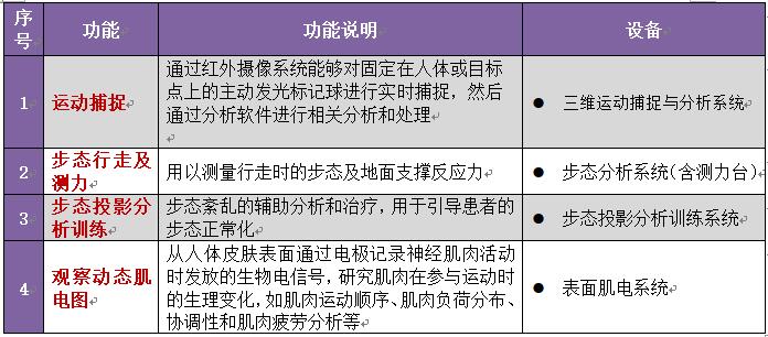 注:以上设备仅列出步态分析常用设备,其它设备及计算机等未列详尽。