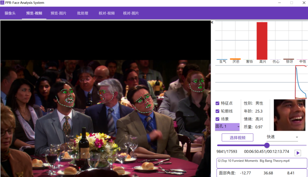 2. 支持视频数据事后回放,提供多种视频播放模式,具体可精确到视频每一帧,方便查看记录过程中的特定情绪变化。