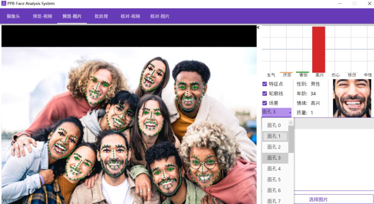 静态图片较大支持30个面孔同时识别
