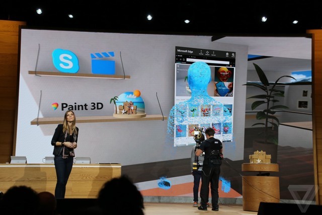 除此之外,微软还展示了一些在VR中的Windows 10应用,如用以3D内容创作的Paint 3D。 微软Windows和设备集团执行副总裁Terry Myerson还表示,他们正在推动VR、AR和MR工具,将同Windows 10下次的更新Creators Update一起,在明年春天发布。