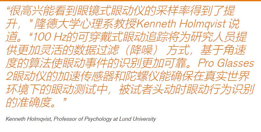 Tobii的另一项技术是滑移补偿技术,即头戴模块在受访者测试时发生轻微的位置移动时的数据误差补偿。凭借滑移补偿技术和50Hz或100Hz的采样率(四部眼动摄像机,每个采样率50Hz或100Hz),研究人员将获得更准确的数据。