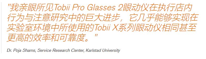 用于**的定性和定量研究的Tobii Pro Glasses 2套装。除了定性研究用的实时观察工具,该套装还包含了后期分析的定量研究工具:您可以叠加数据,创建可视化结果并进行数据统计分析。