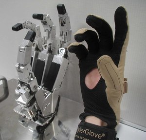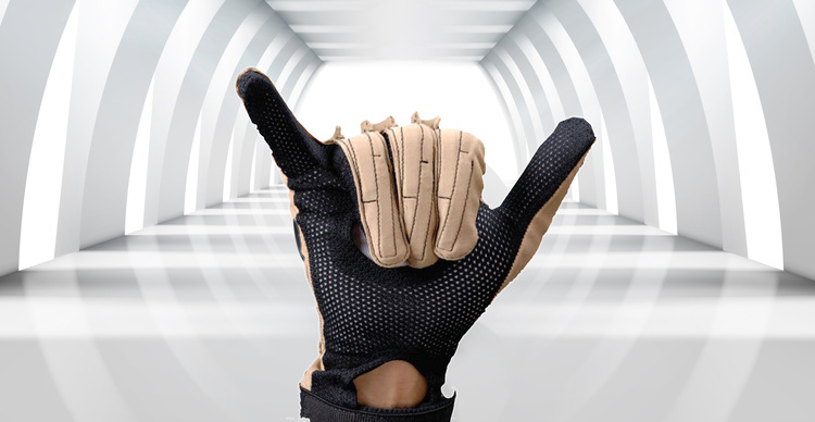 ■ 这个由22个传感器组成的数据手套每个手指具有三个弯曲传感器,四个外展传感器,一个手掌弓形传感器以及用于测量手腕弯曲和外展的传感器。每个传感器都非常薄且灵活,在轻巧的弹性手套中几乎无法检测到。