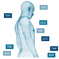 脑电(EEG)、心电(ECG)、皮肤电(EDA)、呼吸(RSP)、血容量脉搏(BVP)、血氧、温度、关节角度、足底压力、拉力压力负荷、加速度等数据。可根据需求配置任意一通道生理传感器,并支持数据实时采集、专业离线分析、跨平台API开发。此外,该设备自身内置三轴加速度、三轴磁力计和录音功能。