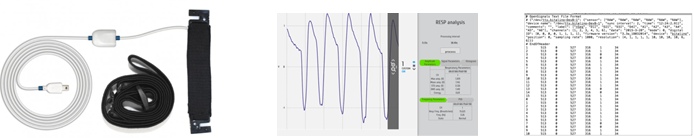 动态呼吸测量系统可对不同人群进行呼吸监测,测量呼吸周期、呼吸速率、振幅、功率谱等指标。可放在胸部或腹部进行测量,操作简单,并内置三轴加速度,可扩展配置其他生理参数:如EMG, ECG, EEG, BVP, EDA等其他生理指标。支持数据实时采集、专业离线分析、跨平台API开发。