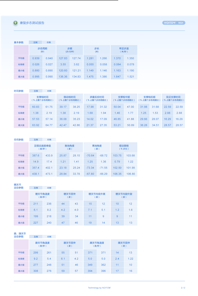 某些参数提供标准数值,把患者测试结果与标准对比,评价患者功能能力,便于治疗师分析结果。