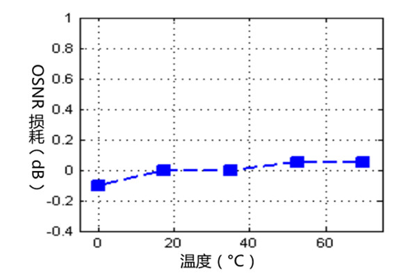 图 5. 使用热 20ps-DI 测量的 42.7 Gb/s NRZ-DPSK 信号的 OSNR 值与温度的关系。