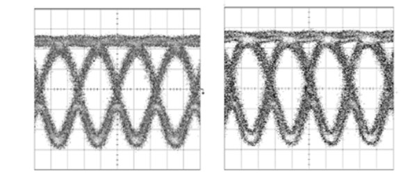 图 3. 经 1 位解调器(左)和热 20ps 解码器(右)解调的 42.7 Gb/s NRZDPSK 信号的实测眼图。