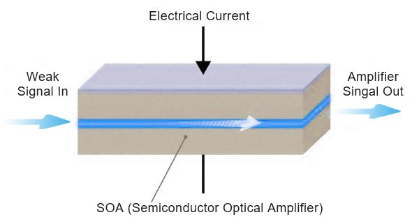 通过施加电流,在半导体中形成特定浓度的带电粒子。这种设置可以改变光的能级,从而使其更加强大。当光的能量略高于某一特定阈值时,光就会得到大的增强。SOAs 在放大光信号、实现高速数据传输以及提高各种光通信系统的性能方面发挥着重要作用。