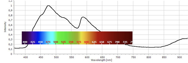 该灯在 400 至 700 nm 的可见光范围内具有连续的宽带强度功率。