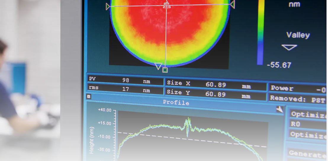 最新的触觉和干涉测量仪器使在最高技术水平下灵活制造非球面光学成为可能。一个专门开发和集成的数据库系统使所有制造步骤的测量结果能够被记录、精确评估并随时访问。使用广泛的测量仪器以实现准确的测量结果。