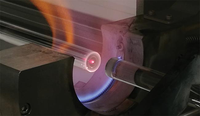 行业使用两种主要的制造工艺来制造光纤:预制棒制造和光纤拉制。预制棒制造基于化学化合物如四氯化硅、四氯化锗和/或氯氧磷的氧化,这些化合物通过旋转的高纯度二氧化硅基板管,并暴露在外部能量源下产生碳质颗粒。这些颗粒沉积在管内壁上,然后塌缩成一根实心棒,称为预制棒。然后将预制棒在光纤拉制塔中加热到接近软化点的温度,直到预制棒的远端落下,从而依靠重力效应来形成光纤。