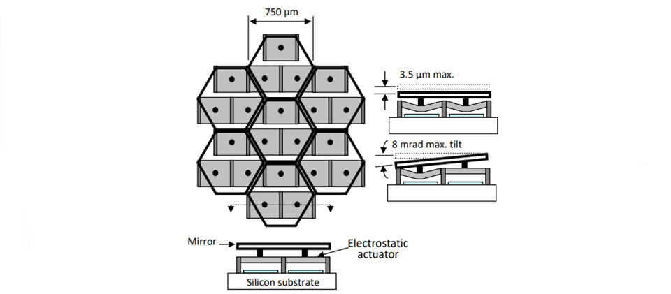 六角倾斜活塞变形镜(TTP-DM)是为用于光纤耦合应用而开发的,其中DM用于修改单个光束分量的相位和角度,以将光传输到大型光纤阵列中。自其发展以来,其用途已扩展到生物成像和天文学等领域的一系列其他应用,这些领域的多样性和多样性要高得多。该设备的设计基于BMC传统的可变形镜技术,该技术使用无静电执行器使连续或分段的镜面变形。在Hex TTP DM的情况下,这些执行器已适用于六边形表面阵列。
