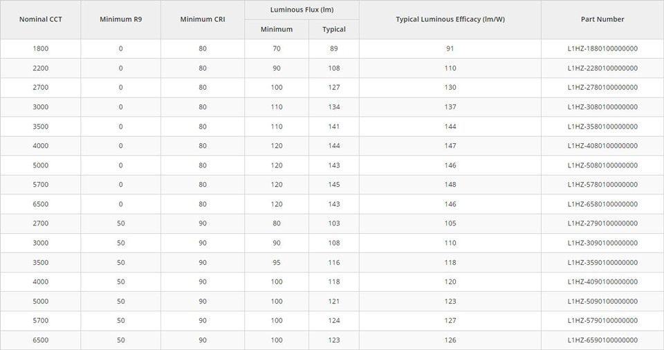 LUXEON HL1Z LED 具有高通量密度性能,体积小巧,可实现优雅、良好的灯具设计。80 和 90CRI 两种色温范围的选择使其成为高性能室内照明应用的选择,并可设计为可调式和白光混色解决方案。同类产品中较好的色彩偏角和高光输出,为设计师提供了高质量光性能,适用于引人注目的照明设计和小型灯具。与传统 LED 光源相比,紧凑的封装尺寸和高冲量可实现灵活的设计、光束转向和白光调谐。
