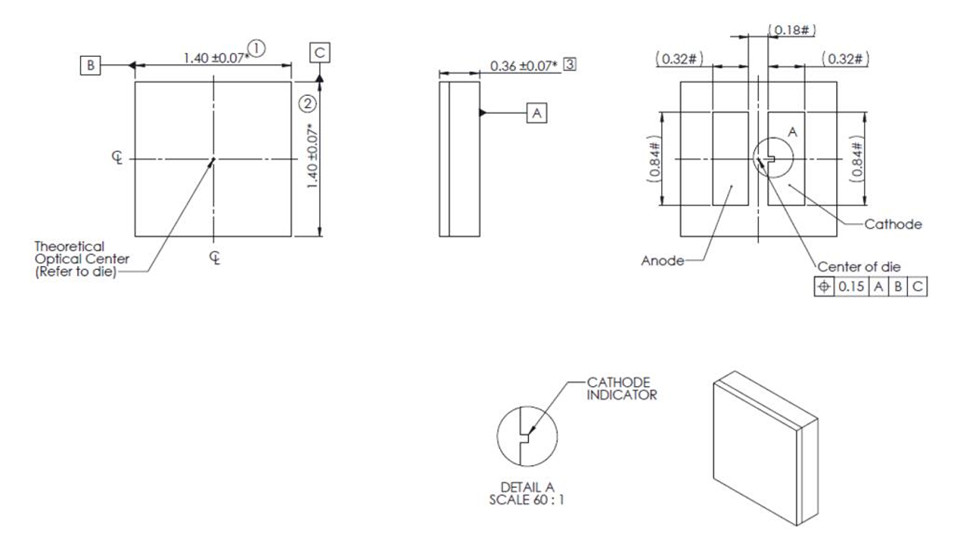 封装尺寸小(1.4 x 1.4 x 0.36 mm),可实现窄光束光斑的紧密排列阵列
