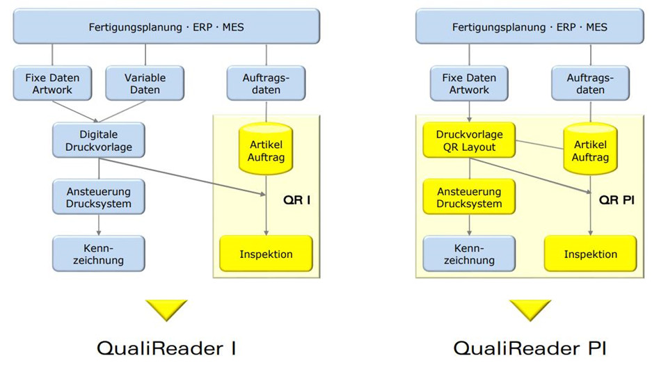 从生产计划中自动传输物品和订单数据。从数字印刷模板 "Golden Label "自动导入印记检测,对固定、可变和序列化数据进行完整的检测,子混合控制。印刷和检测一体化自动化,与 QualiReader I 一样的检测功能,创建数字印刷模板(QualiReader 布局)时,贴标和检测同时进行。选择并启动作业,无需任何额外的中间步骤,由于打印和检测数据的一致性,可避免错误输入。