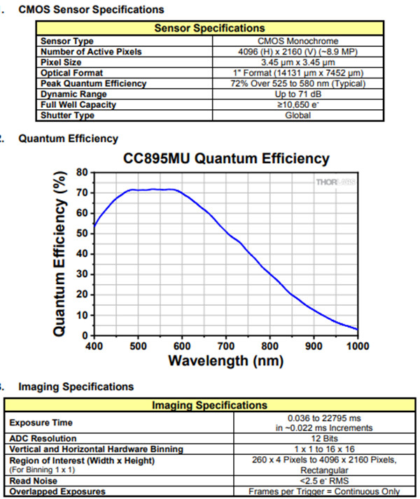 THORLABSCMOS小型科研级相机(890万像素,密封冷却型)CC895MU