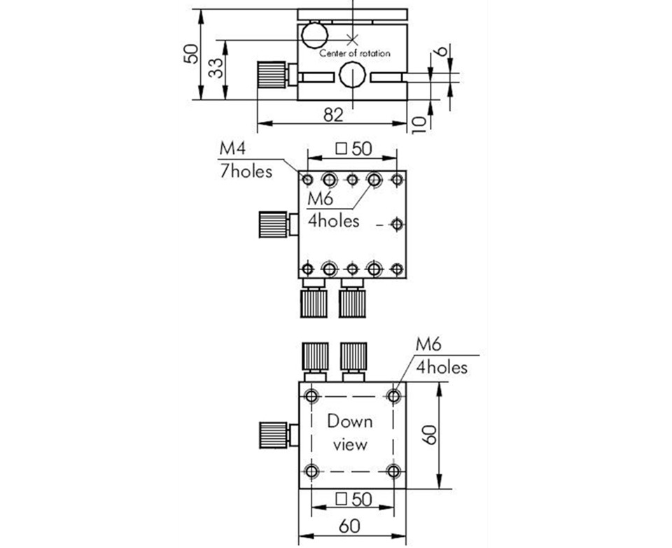 三角棱镜/分束器台6PT169在三个平面上提供未校准的倾斜运动。它是棱镜、分束器和反射镜的理想工作平台,需要绕三个正交轴准确调整角度。使用弹簧夹具4SC,各种光机机构可以快速且一致地连接到工作台的顶部。可以使用杆夹4BC32或V形夹4VC41将棱镜固定在工作台顶部。每三个角度棱镜/分束器台6PT169配备三个驱动器,确保绕三个不同的轴旋转。两个较低的螺钉围绕两个正交的水平轴转动桌子的顶部。上部螺丝确保在平面内围绕垂直轴旋转。所有三个旋转都是完全独立的,并且所有三个轴都是完全正交的。细螺距螺纹确保高分辨率,提供稳定的平台。所有三个旋转都在顶板中心下方约27mm处。三角分束器工作台6PT169可以连接到STANDA光学工作台或使用工作台夹具3TC5连接到其他工作台。此外,在桌子底部还提供了四个连接螺纹M6孔。桌子的主要部件由黑色阳极氧化铝制成。