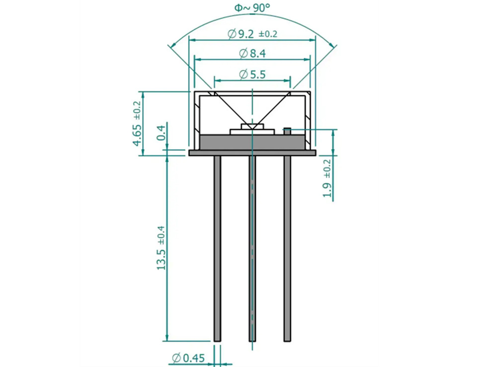 PV-5-AF1×1-TO39-NW-90是一种基于复杂的HgCdTe异质结构的非制冷红外光电探测器,具有高的性能和稳定性。为了使该探测器免受不必要的光学边缘效应的影响,VIGO开发了抗边缘技术(基板表面的内部修饰)并成功应用。这使得边缘比标准红外探测器小10-40倍。