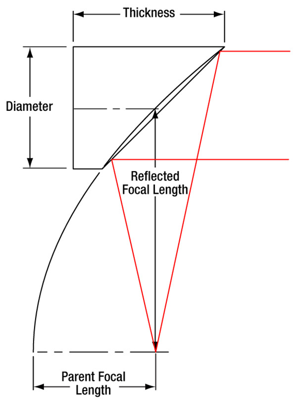 Thorlabs的离轴抛物面(OAP)反射镜的反射表面是母抛物面的一部分。它们可以无色差地聚焦准直光束或准直发散光源。它们的离轴设计能够在空间上将焦点从光路其他部分中分离出来。其反射设计消除了透射光学元件会引入的相位延迟和吸收损耗,并且十分适合用于飞秒脉冲激光器。