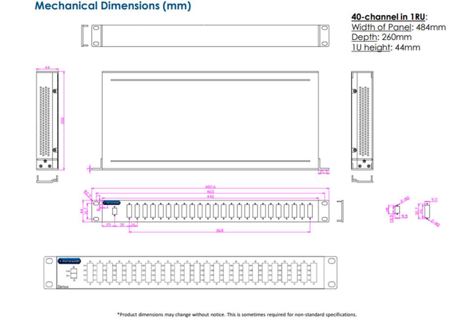 Mux/Demux 模块采用 1RU 19 英寸机架式机箱包装,安装简单,模块化程度高。这种基于机箱的系统为网络设备制造商提供了一种可扩展性更强、密度更高的解决方案,可通过简单的可插拔接口为现有网络和新网络增加 DWDM 功能。