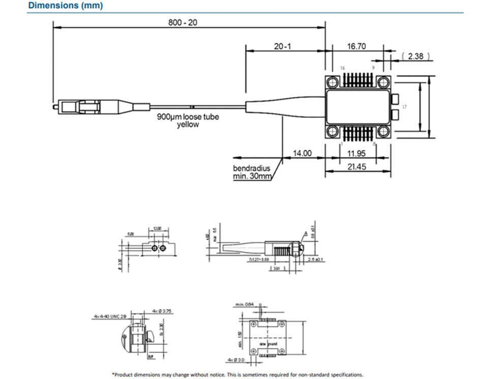 GHBD 平衡光接收器设计用于高速模拟和数字光检测,性能高,差分增益约为 2800 V/W,带宽高达 35 GHz。它采用紧凑型 SMD 封装,具有两个波导集成 PIN 光电二极管和一个限幅放大器,光纤长度匹配。限幅放大器的差分输出电压摆幅约为 600 mV。该器件实现了电气和光学相位传播,平衡信号路径之间的总偏差小于 5 ps,所有光纤对的总偏差为 10 ps。OUTN 和 OUTP 具有独立的直流输出电压监控功能,每个放大器路径都包括线性放大级的阈值控制,以优化差分输出信号。该光电收发器非常适合需要高灵敏度和高速平衡检测的应用。
