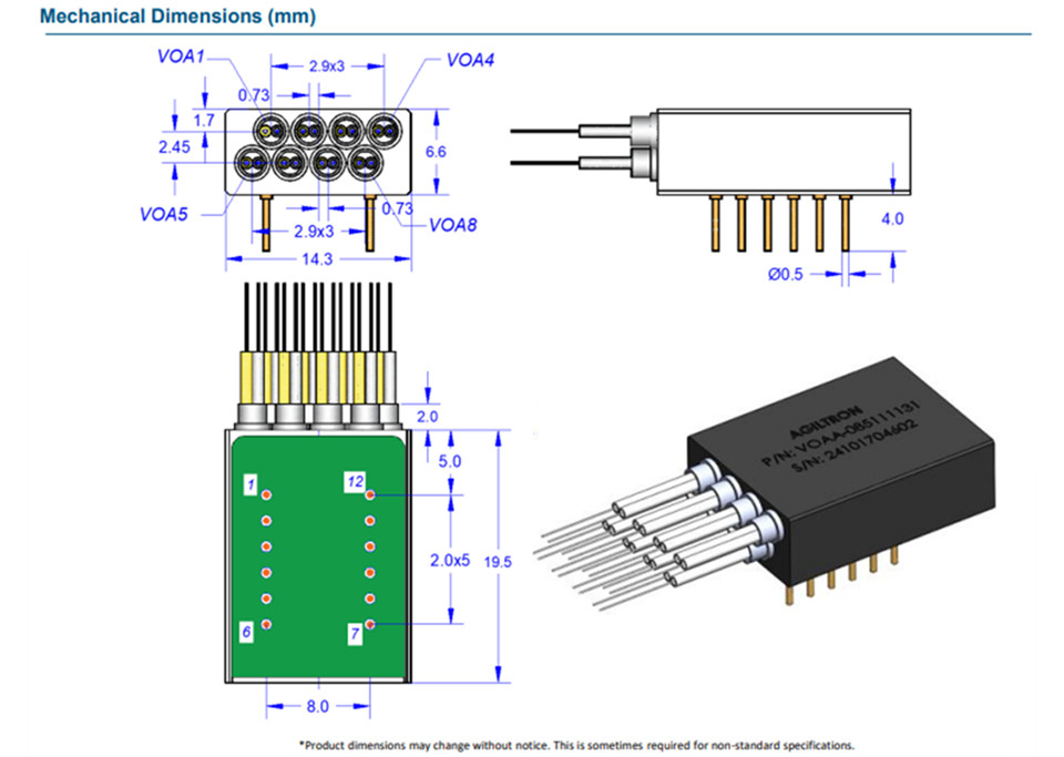 该系列 MEMS 可变衰减器阵列采用超微型设计,提供 0-5V 驱动和低功耗。它具有可重复性和高的光学性能。这些阵列完全符合 Telcordia 1209 和 1221 可靠性标准,可确保稳健可靠的运行。其设计包含用于安装的插针,提供了一种有效率、安全的安装方法。