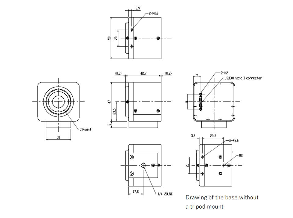 外部尺寸(宽×高×深):50.0 × 47.0 × 42.7 毫米;不包括镜头、三脚架支架和投影仪