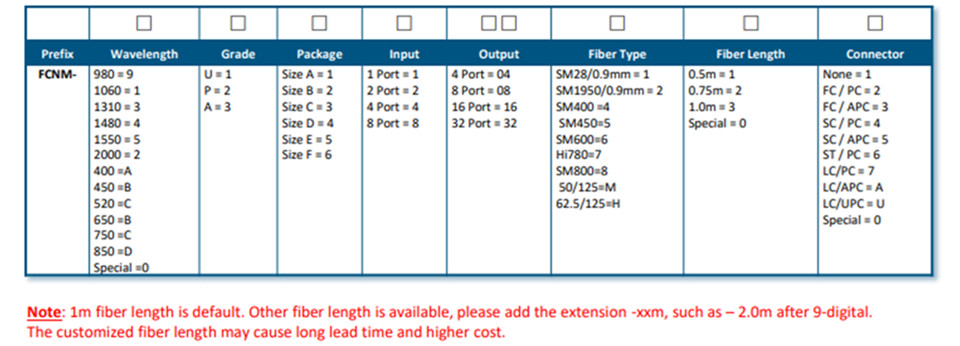 NxM PM 耦合器/分路器基于星形/树形配置的级联 2x2 熔合耦合器,具有光损耗低、均匀性好和消光比高等特点。与其他方法相比,该器件在宽波长和温度范围内的分光性能在行业内是创新的。可根据客户要求进行配置。我们生产的 NxM 单模耦合器的光谱范围从 370 纳米到 2400 纳米。耦合器在组合光束时会产生显著的损耗;例如,50/50 耦合器在组合时会对每束光产生 50% 的损耗。