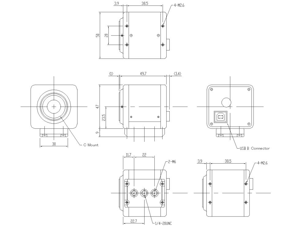 • USB2.0接口 USB2.0 接口与 PC 高度兼容,无需采集卡或主机适配卡即可直接将图像采集到 PC 上。