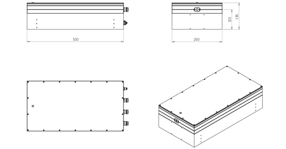 激光头尺寸(宽/高/长):260 mm × 138 mm × 500 mm(水冷式)