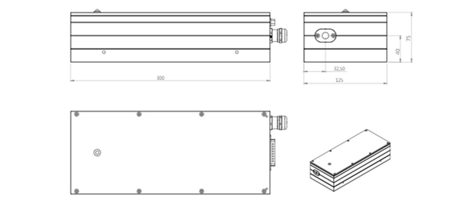 激光头尺寸(宽/高/长):300 mm × 125 mm × 75 mm
