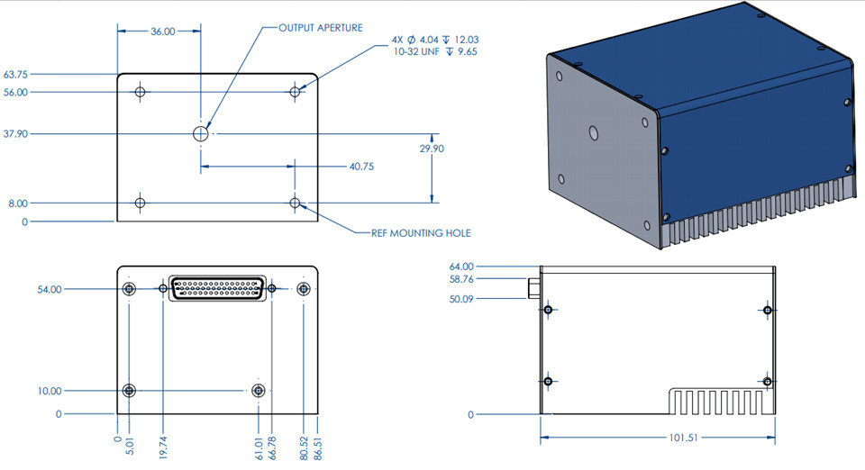 激光器头(长x宽x高):100 mm X 81mm X 63mm