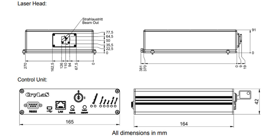 激光头尺寸:91 x 270 x 379 mm³(高 x 宽 x 长)