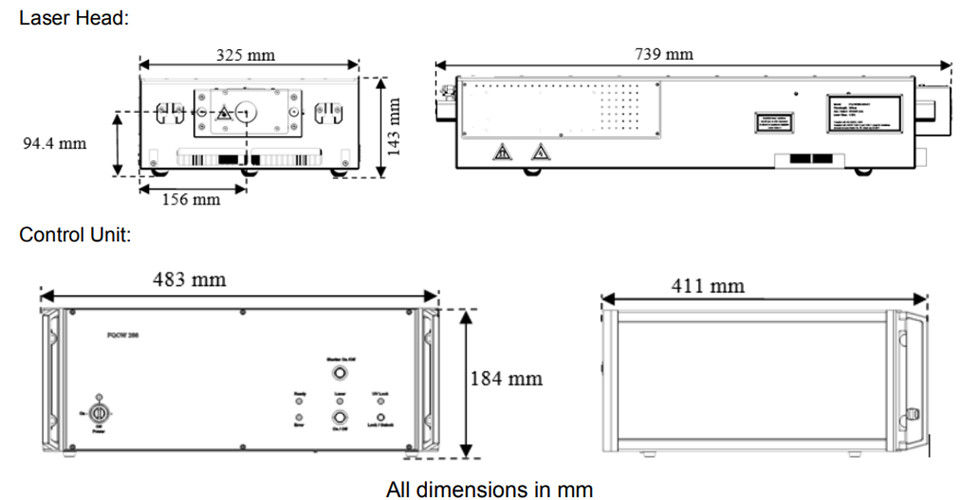 激光头尺寸:143 x 325 x 739 mm³(高 x 宽 x 长)