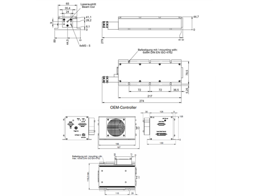 激光头尺寸:217 x 65 x 45 mm