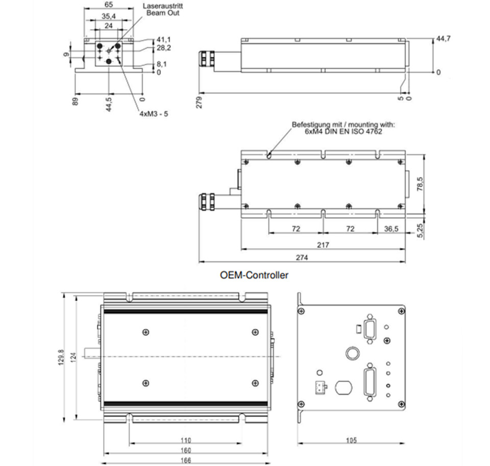激光头尺寸:217 x 65 x 45 mm