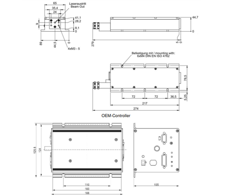 激光头尺寸:217 x 65 x 45 mm