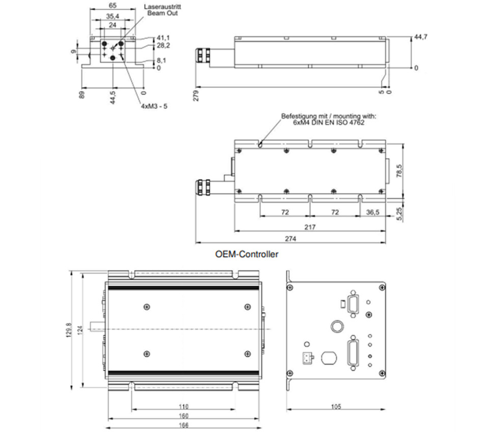 激光头尺寸:217 x 65 x 45 mm