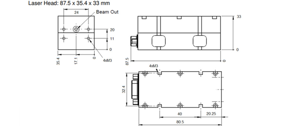 激光头尺寸:217 x 65 x 45 毫米