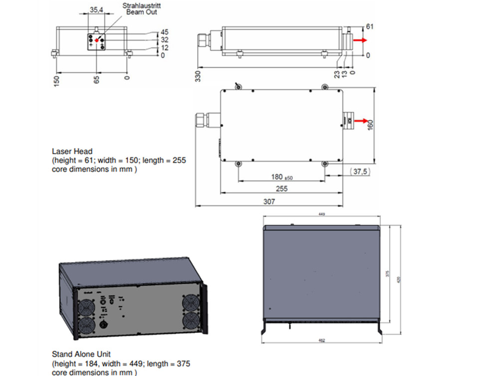 激光头尺寸:61 x 150 x 330 毫米(高 x 宽 x 长)
