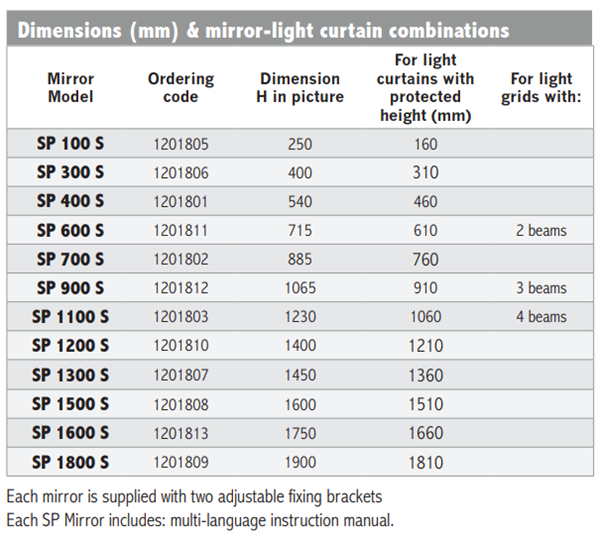• 高度为 250 至 1900 毫米的预装镜子
