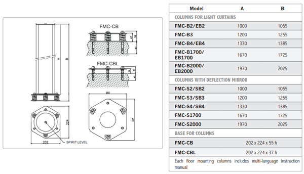 ReeR光幕和偏转镜的支撑柱,旨在提供牢固的地面固定、快速安装以及系统光学对准的简单和准确调整。