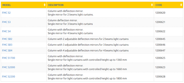 • 用于光幕的 FMC E、FMC B 和 FMC SG 型号