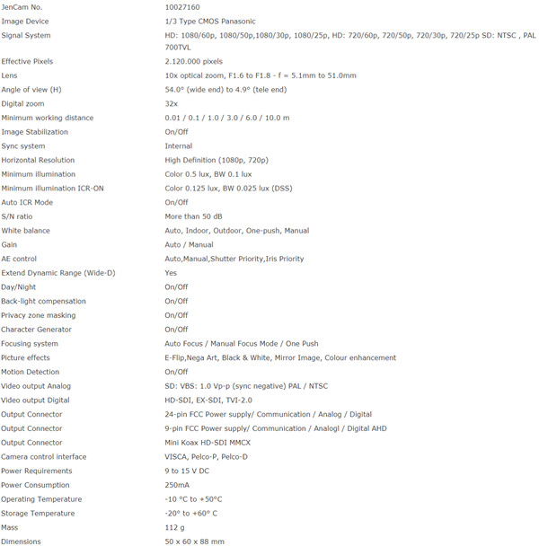 JENCAM变焦相机20Z10ST是一款具备高清成像、灵活变焦与低照度性能的工业级相机,适用于机器视觉、安防监控及智能交通等领域。
