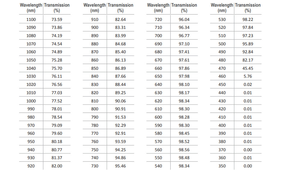 • 抗反射涂层可在 VIS 和 NIR 光谱中实现更大透射率