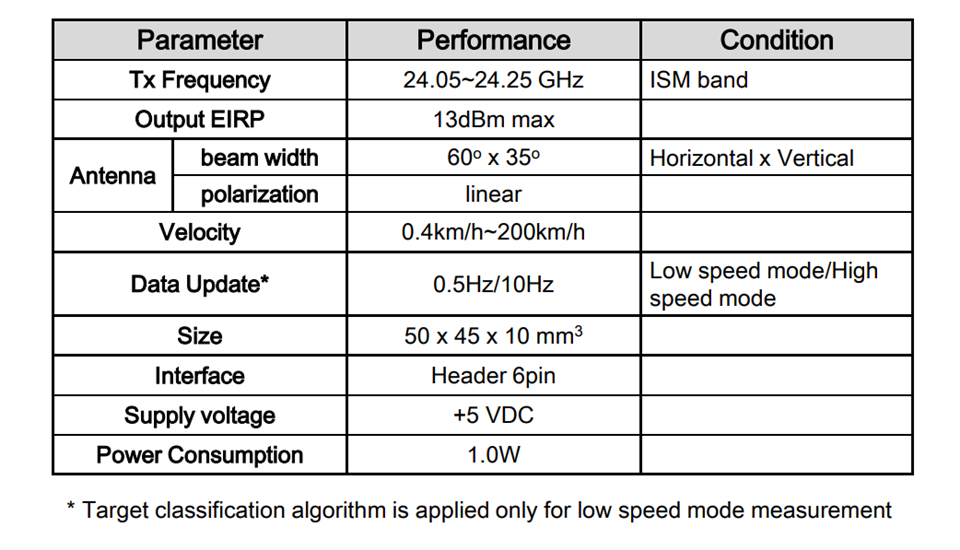 WDR300 型雷达发布用于单调运动检测。小尺寸为许多应用提供了低成本的解决方案。